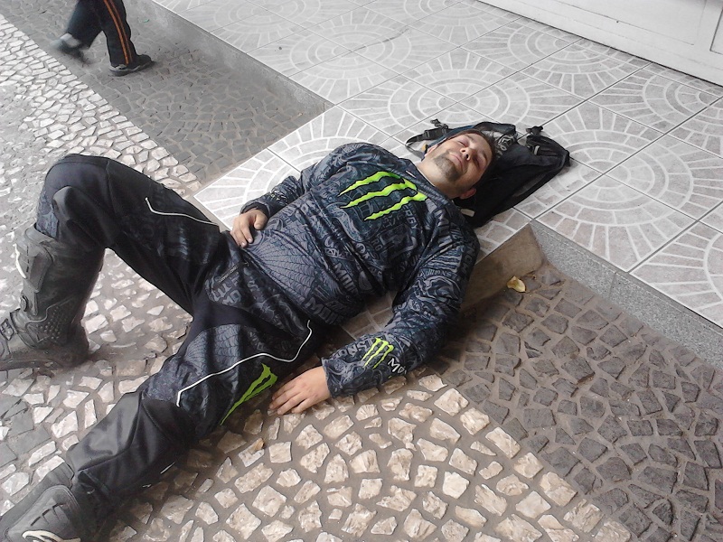 Só lembro do meu filho dizendo, pai, pai, pai venha ver o bebado dormindo no chão com roupa de moto!!!! kkkkkkkkkkkkk