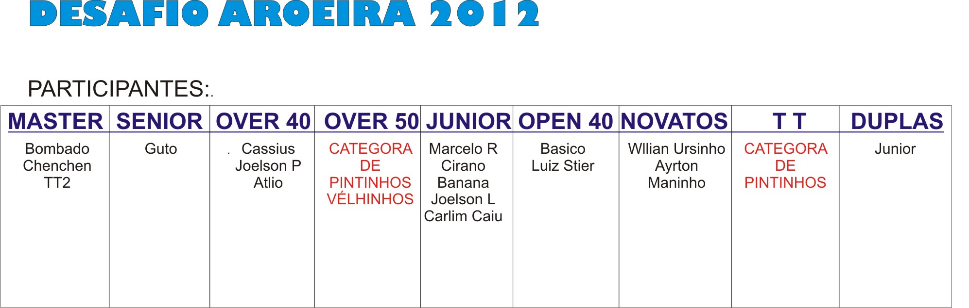 Estamos anciosos pela participação dos bons experientes senhores da OVER 50.