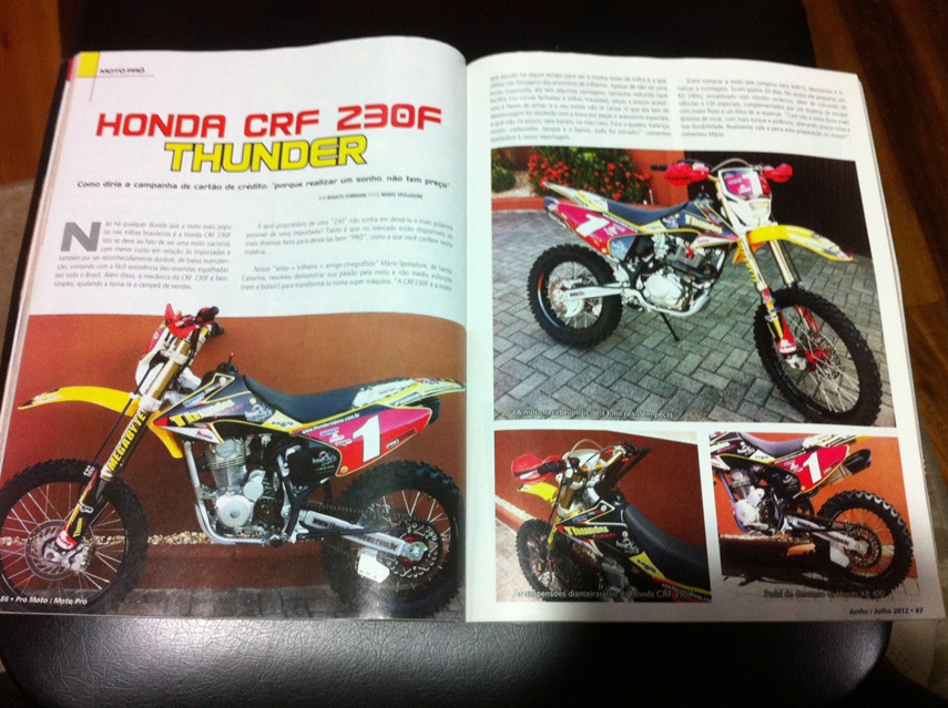 Vendo CRF230 2012/2012, único dono, montada com diversas peças especiais. Moto com matéria na revista Pro Moto nr. 111, páginas 86 a 90.