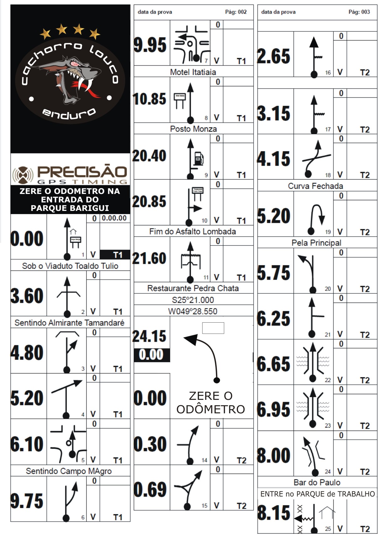 Obs. O Cartão com horários dos CH’s será entregue no parque fechado antes do horário de largada. O parque fechado e os parques de trabalho seguirão o descrito no Regulamento de Enduro FIM 2016 do TCC