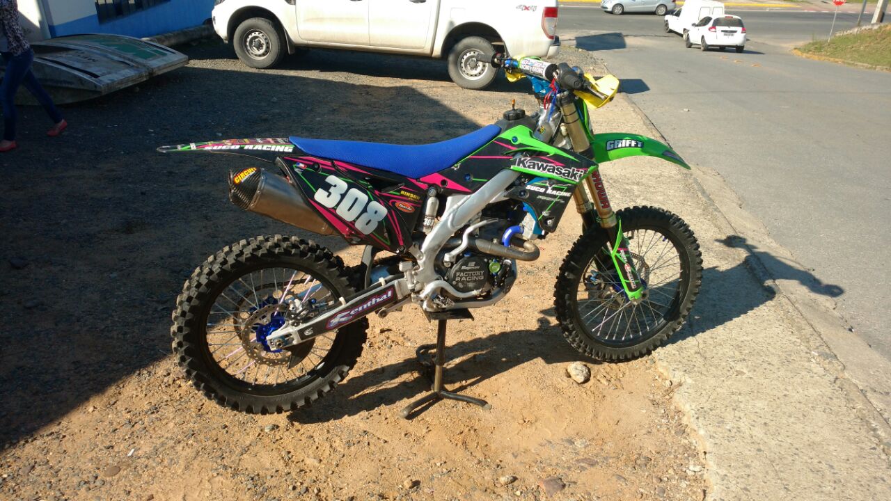 Foi trocado pistão, biela e cilindro originais Kawasaki, válvulas delwest titanium, corrente de comando etc etc tudo novo... Escape completo yoshimura, disco de freio over, suspencao preparada, protetores de radiador, guidão renthal twinwall, manetes arc.... Moto top e praticamente zero, nada para fazer, pode trazer seu mecânico para conferir....