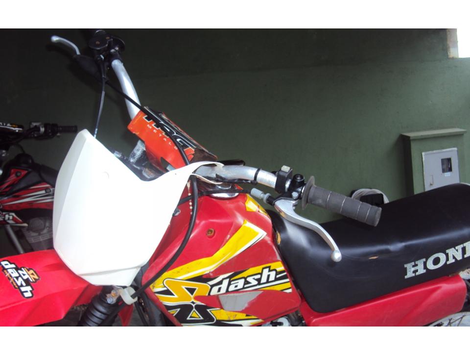 motor 125cc com pistão XR200, relação CRF230 13X48, guidão Oxxy com alongador, ponteira 788 ProTork, pneus dianteiro novo aro 21, traseiro meia vida aro 18, acelerador rápido, lubrificador de corrente, comeras de ar grossa rinaldi, trava de pneu, gráficos dash, suspensão traseira nova (buchas link e eixo central) rolamentos das rodas e caixa de direção novos, todas as peças originais para montar para rua. Motor forte, moto ideal para trilhas, muito leve e econômica.