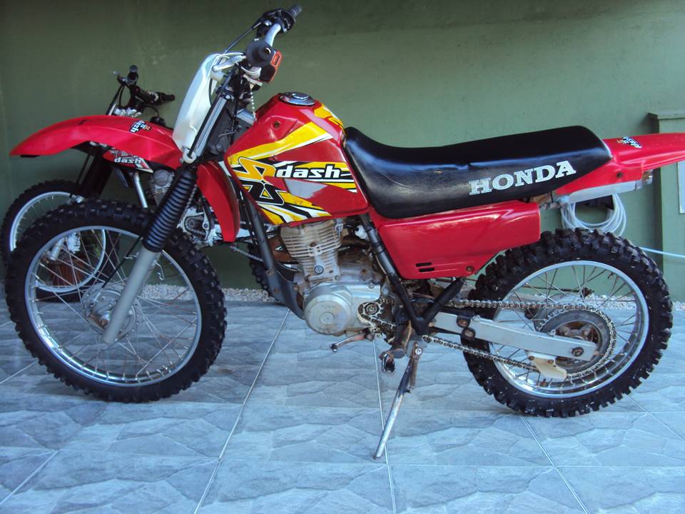 motor 125cc com pistão XR200, relação CRF230 13X48, guidão Oxxy com alongador, ponteira 788 ProTork, pneus dianteiro novo aro 21, traseiro meia vida aro 18, acelerador rápido, lubrificador de corrente, comeras de ar grossa rinaldi, trava de pneu, gráficos dash, suspensão traseira nova (buchas link e eixo central) rolamentos das rodas e caixa de direção novos, todas as peças originais para montar para rua. Motor forte, moto ideal para trilhas, muito leve e econômica.
