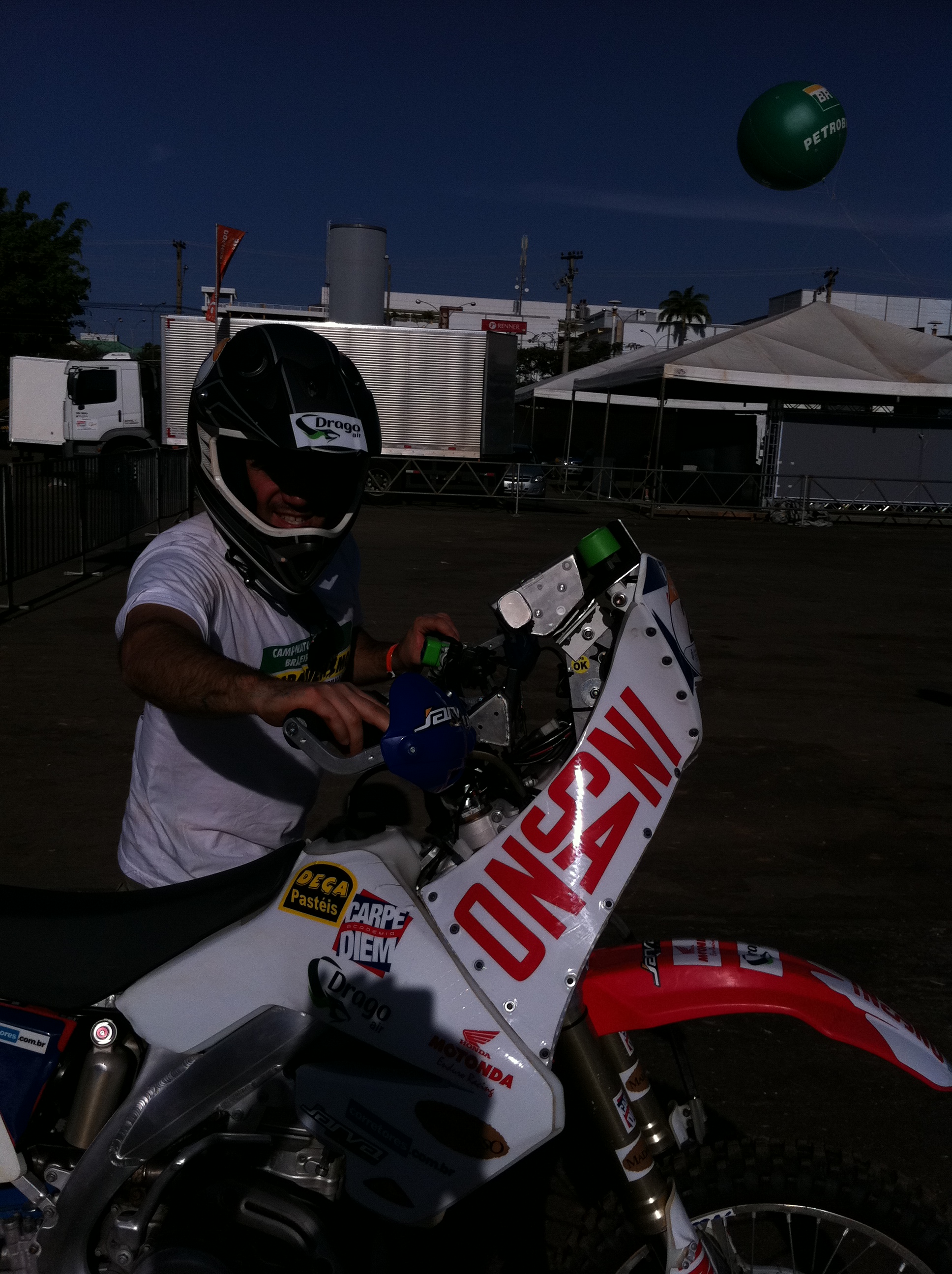 Como um bom empresario, nosso piloto ja nao eh um competidor dedicado como e nos negocios, hoje pratica o Free Ride. Mas vamos torcer para que tenha um bom resultado e que chegue ao final dos 4 dias com tranquilidade, afinal sao 2.000 km conduzindo o boizao que esta na foto.