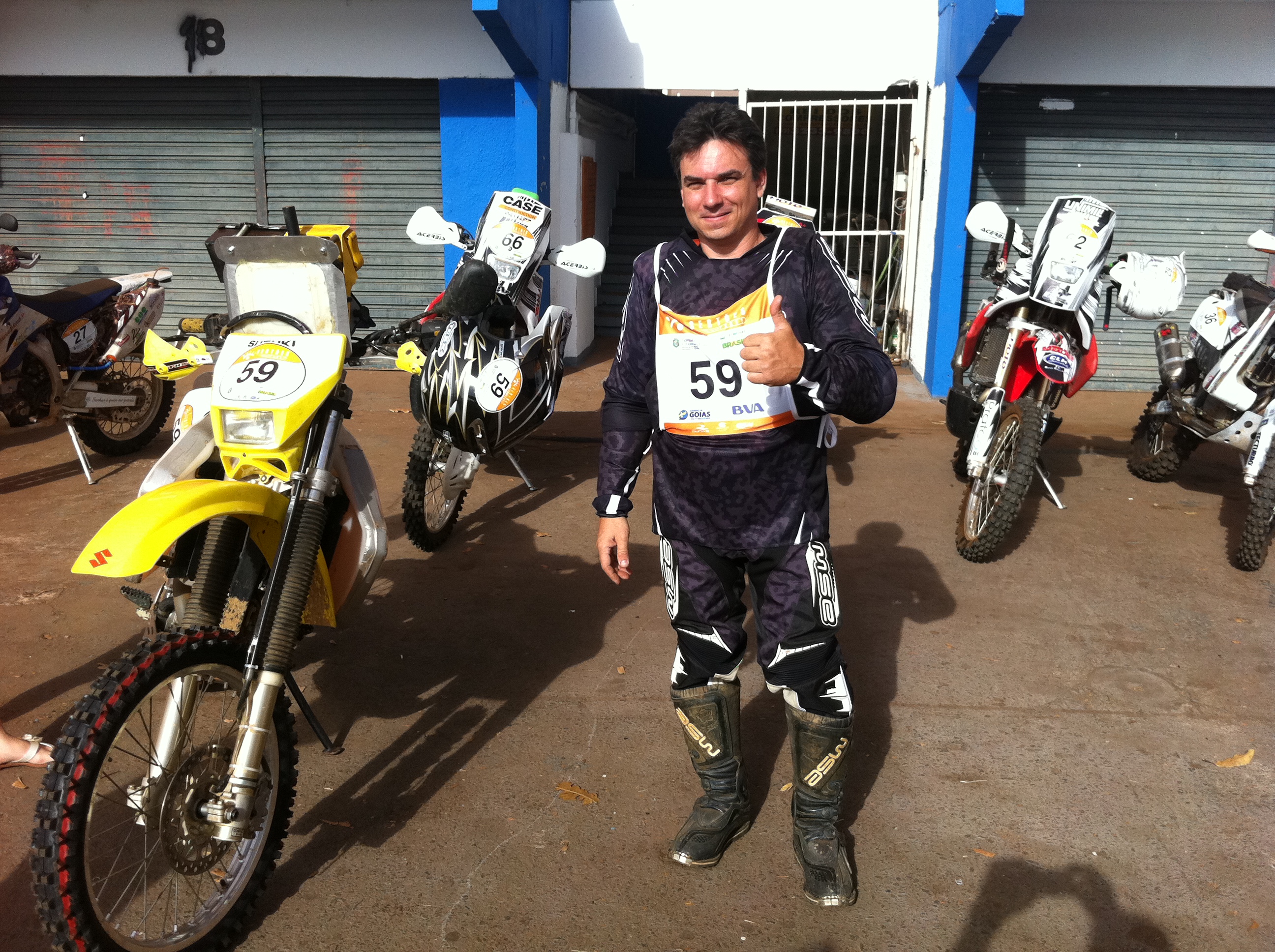 Como um bom empresario, nosso piloto ja nao eh um competidor dedicado como e nos negocios, hoje pratica o Free Ride. Mas vamos torcer para que tenha um bom resultado e que chegue ao final dos 4 dias com tranquilidade, afinal sao 2.000 km conduzindo o boizao que esta na foto.