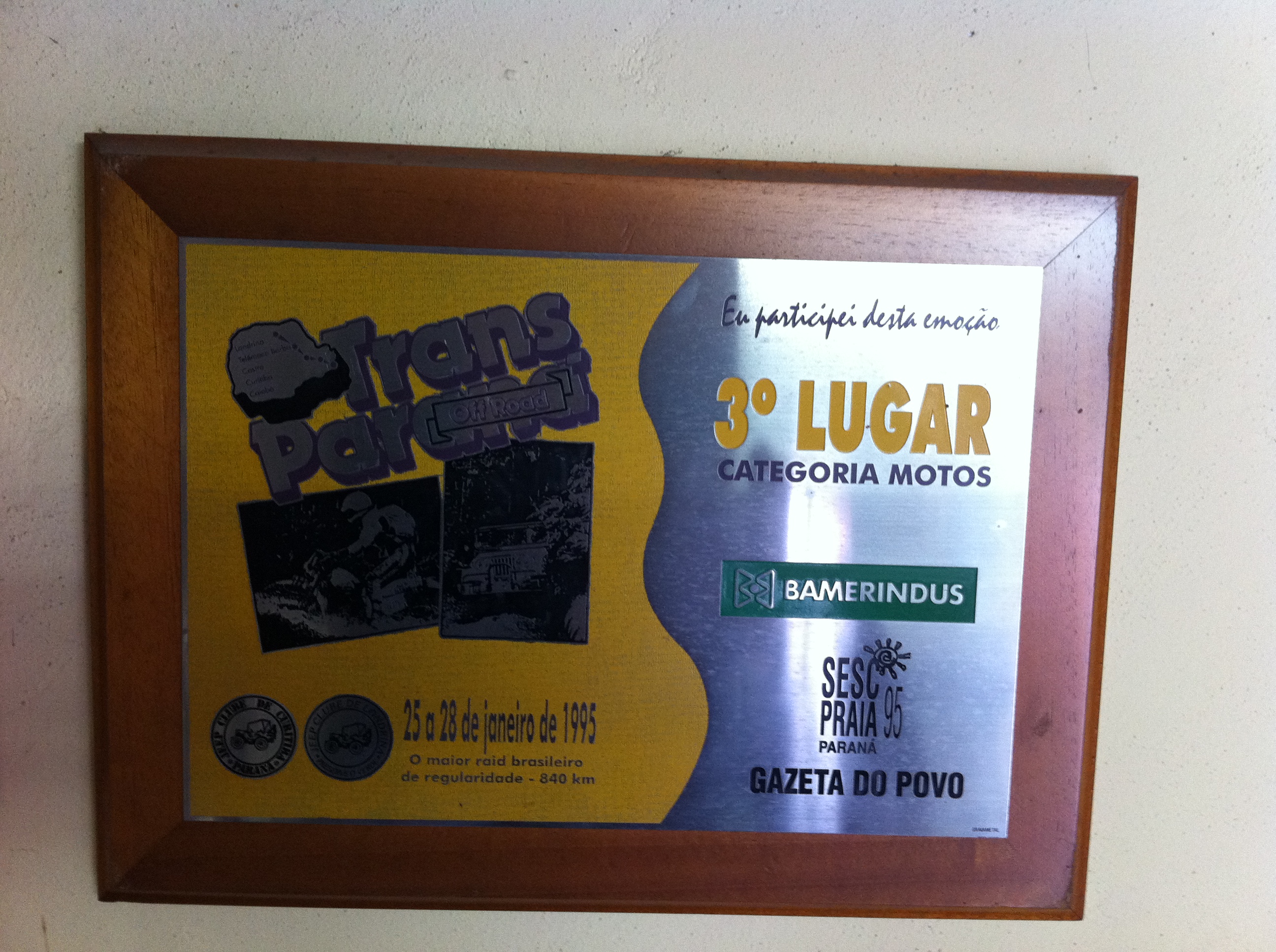 Na ocasião participei com uma potenta AGRALE . que ao passar dos anos nem me lembro do seu calibre modelo etc mas segue abaixo foto do trofeu da prova.
