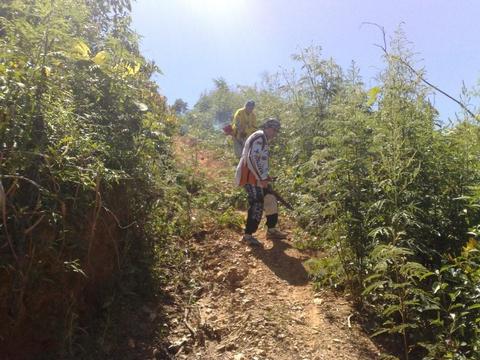 Pessoal trabalhando nas trilhas.