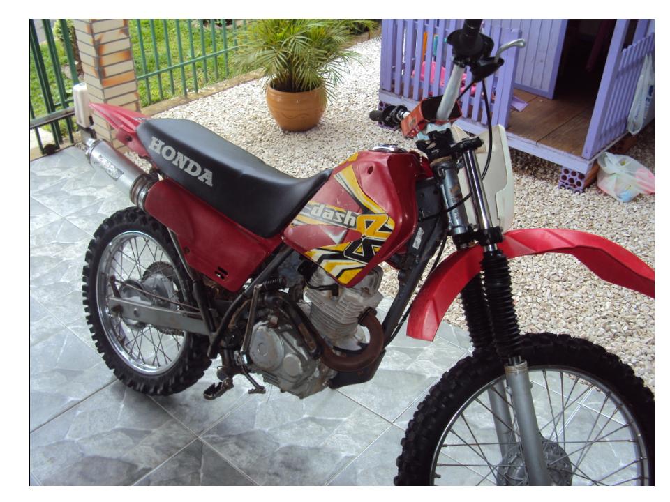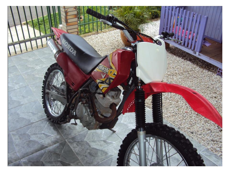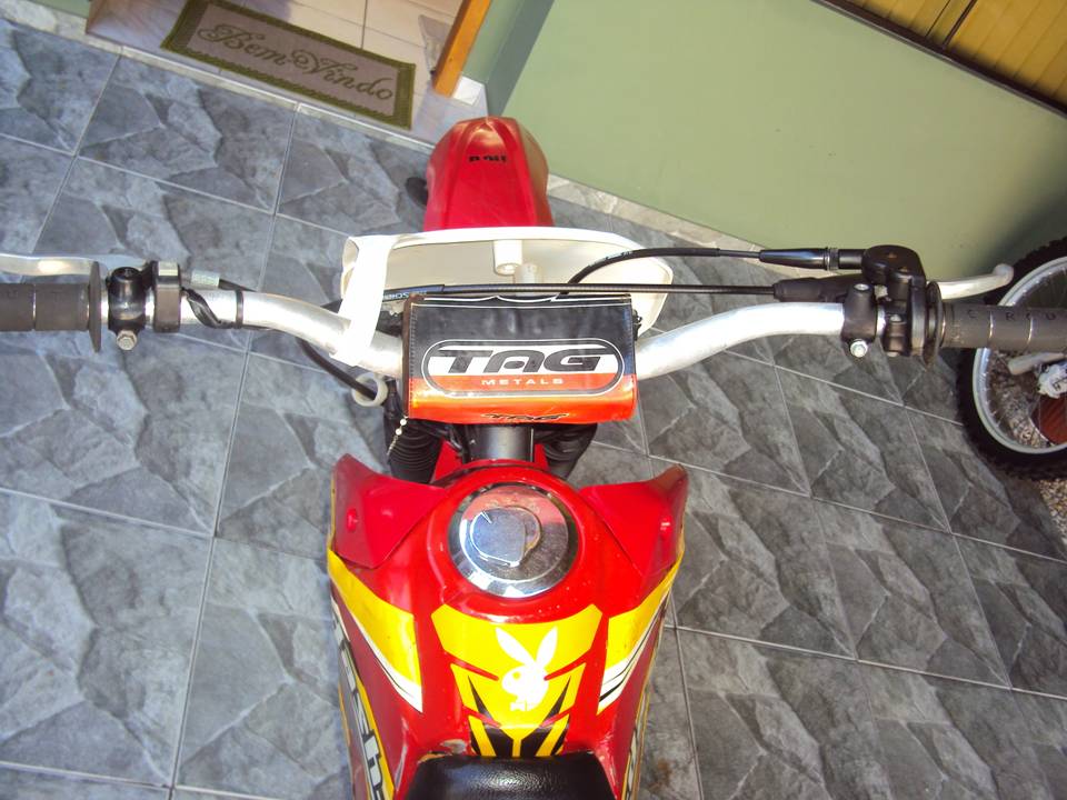 motor 125cc com pistão XR200, relação CRF230 13X48, guidão Oxxy com alongador, ponteira 788 ProTork, pneus dianteiro novo aro 21, traseiro meia vida aro 18, acelerador rápido, lubrificador de corrente, comeras de ar grossa rinaldi, trava de pneu, gráficos dash, suspensão traseira nova (buchas link e eixo central) rolamentos das rodas e caixa de direção novos, todas as peças originais para montar para rua. Motor forte, moto ideal para trilhas, muito leve e econômica.
