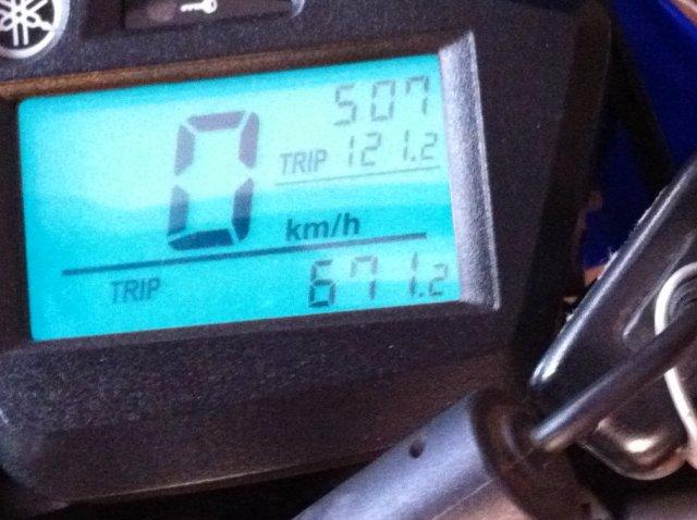 Começamos bem, mas depois de 60 Km paramos para colocarmos a nossa proteção contra "chuva", pois o tempo estava bem nublado com nuvens bem carregadas.