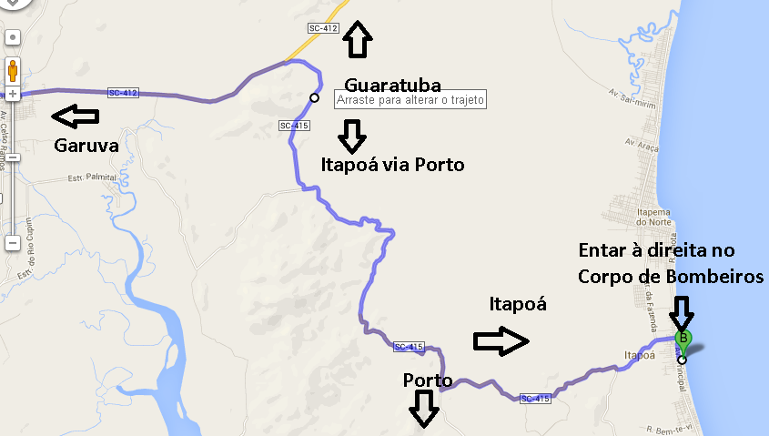da BR 101 Garuva SC 412 até SC 415 trevo a direita que da aceso ao porto 11,60km