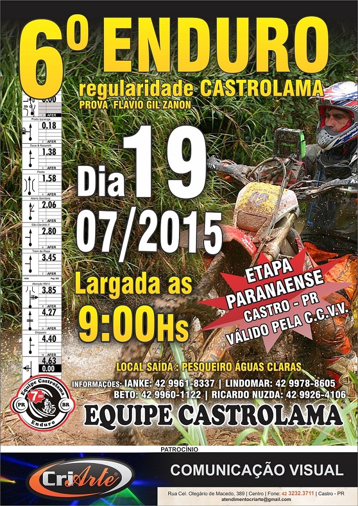 Convido a todos para participar do nosso VI Enduro de Regularidade Equipe Castrolama, que vai ser válido pela copa CCVV e pelo Campeonato Paranaense de Regularidade.